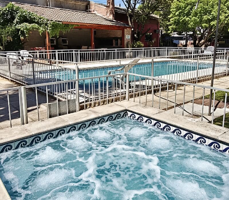 De 4x5 mts, cercada. Además hidromasaje climatizado.